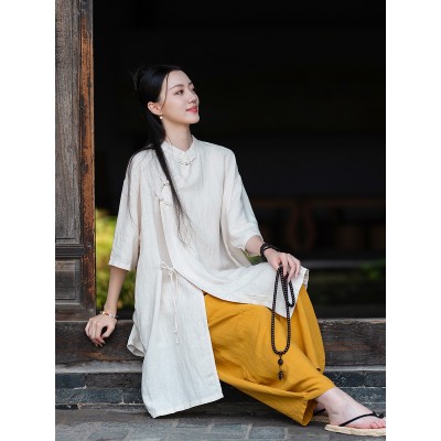 25 New and original Chinese style Guofeng Temple monk clothes Women's linen thin Buddhist meditation meditation meditation clothes