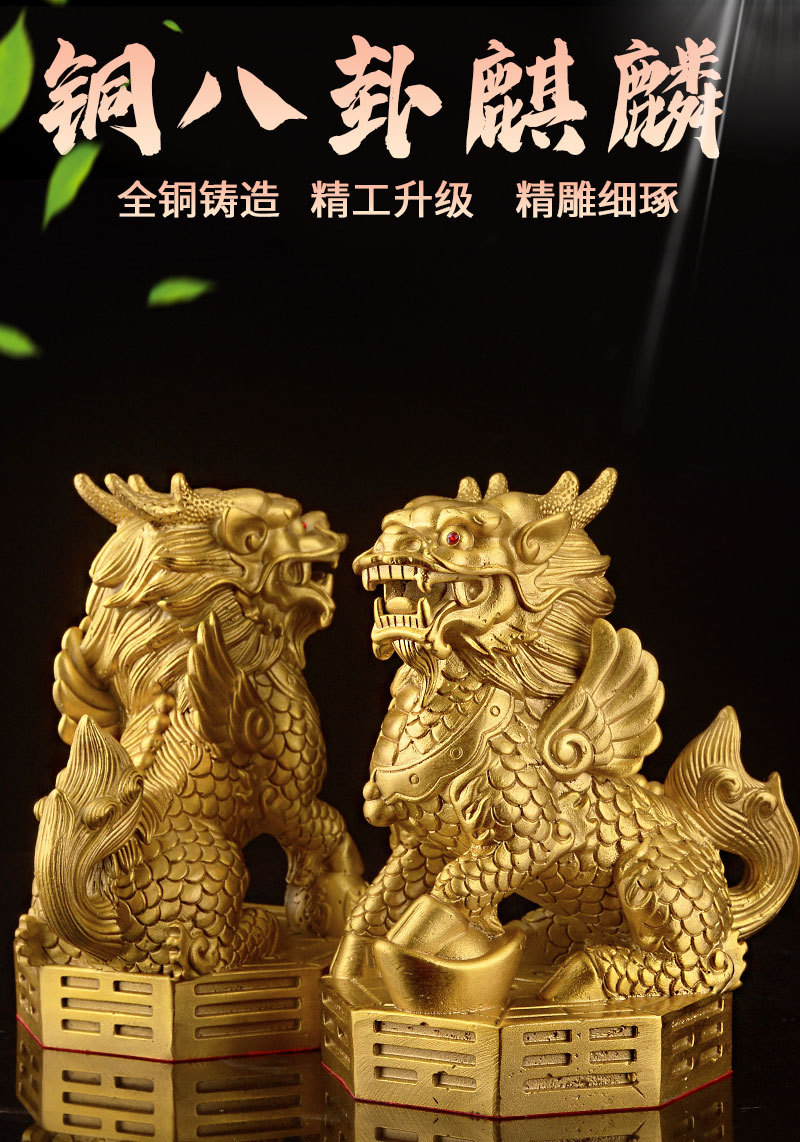 Brass unicorn ornament, the guardian god of wealth and fortune, which is used to control and receive wealth