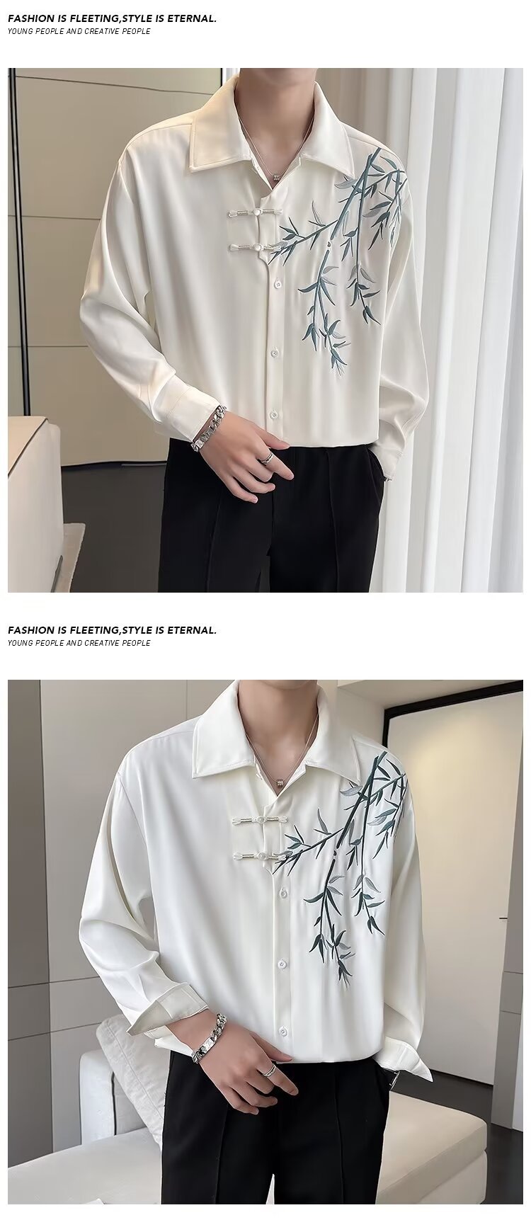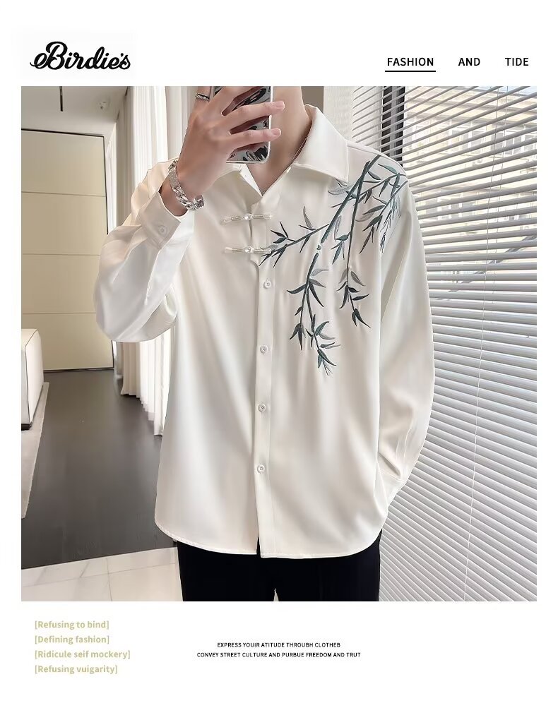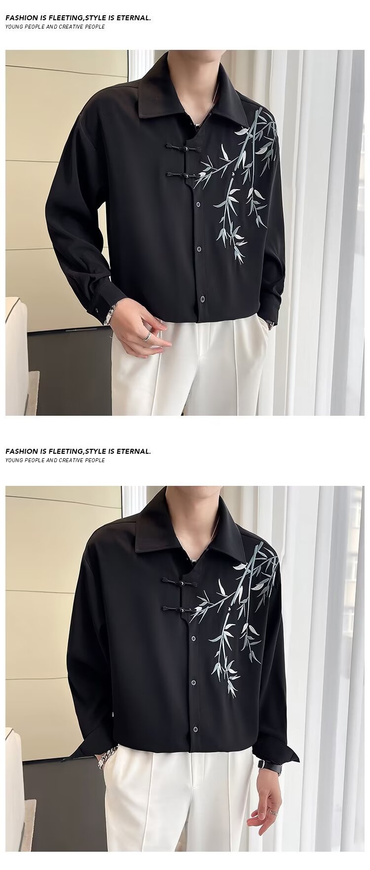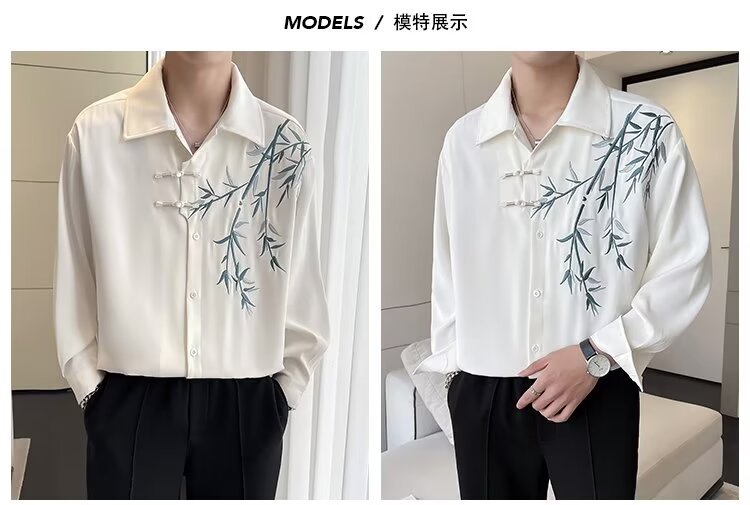 New Chinese style bamboo embroidery long-sleeve shirt Hanfu buttoned cheongsam coat online image black