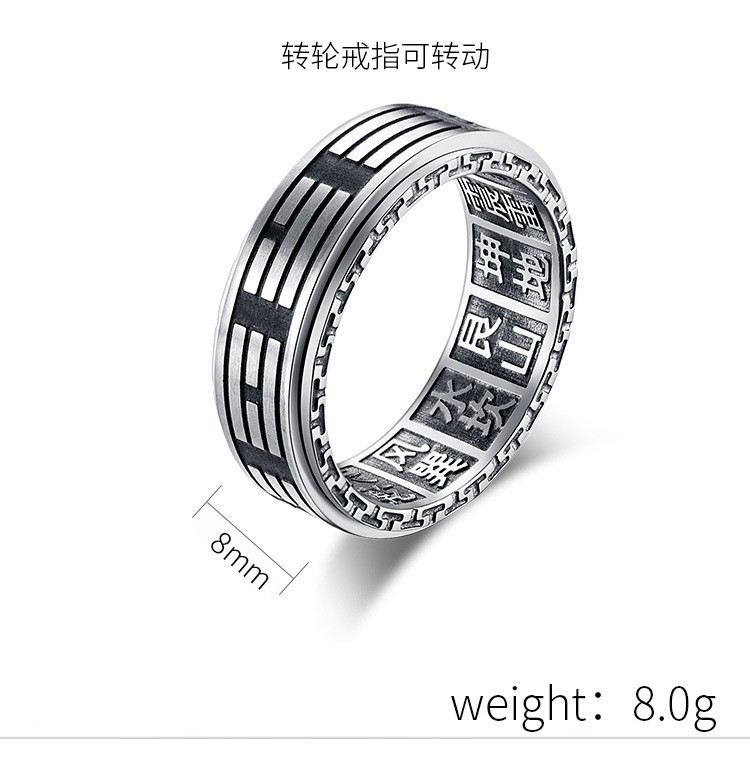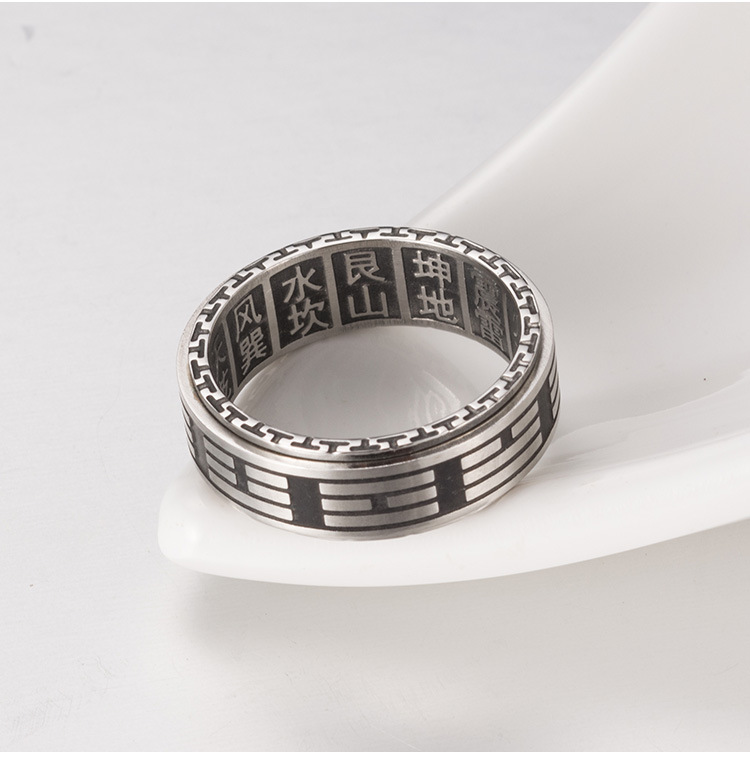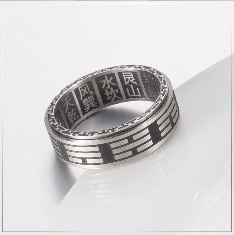 The movement of Tai Chi generates Yang, and the stillness generates Yin. This ring can be turned, which is consistent with the cycle of yin and yang