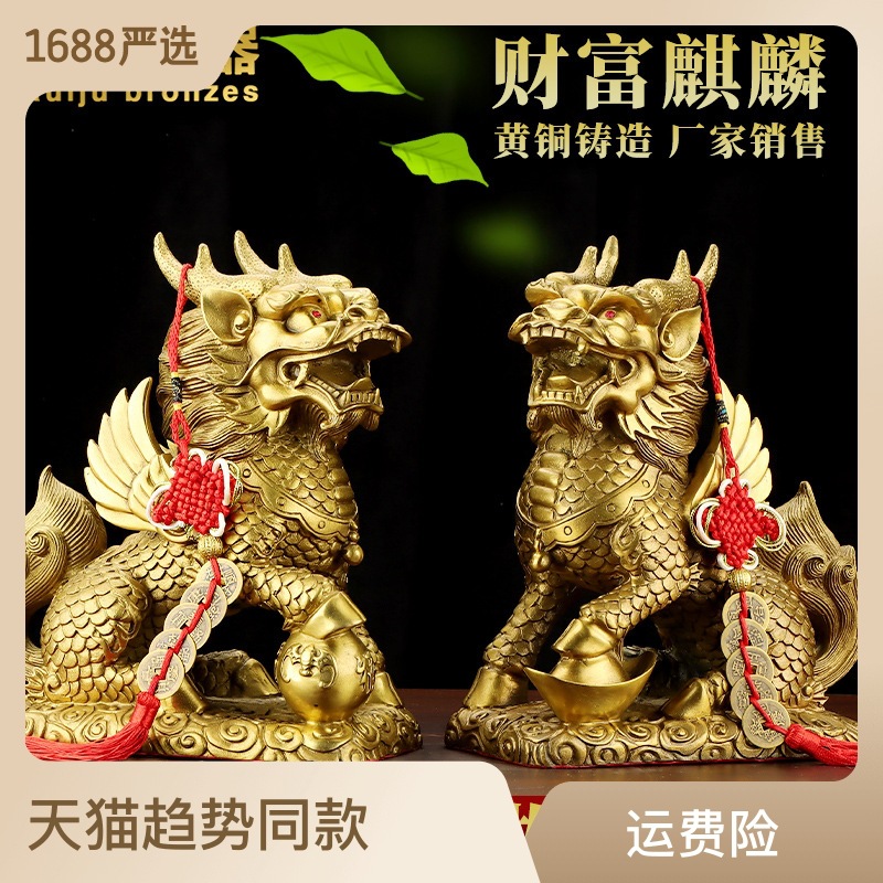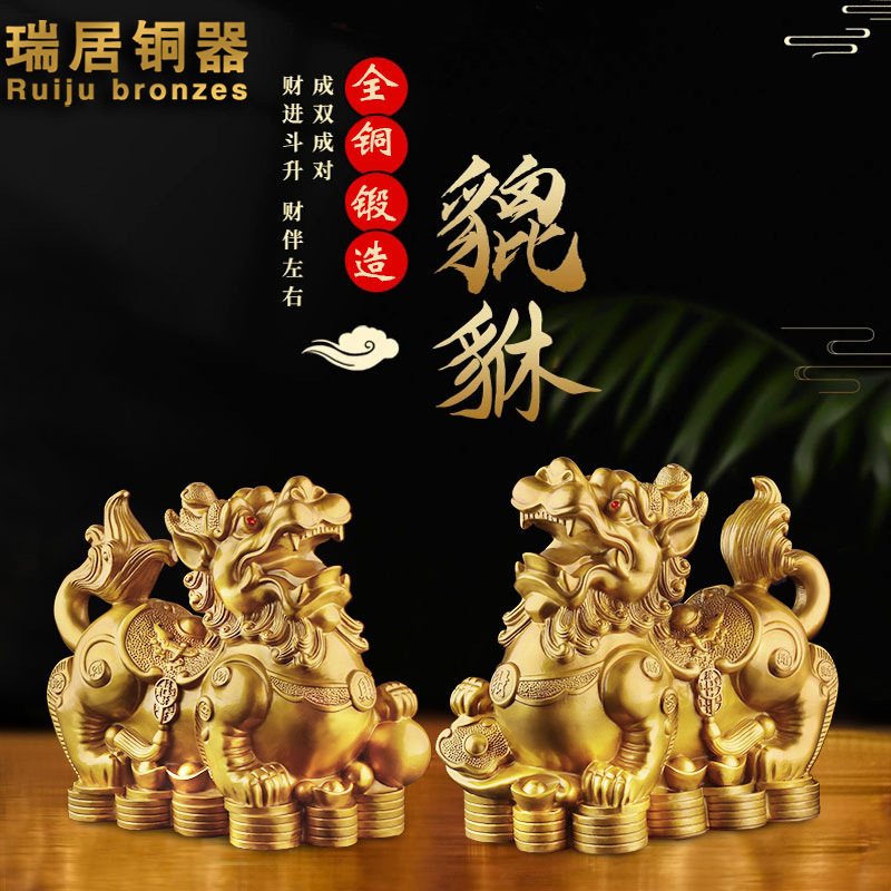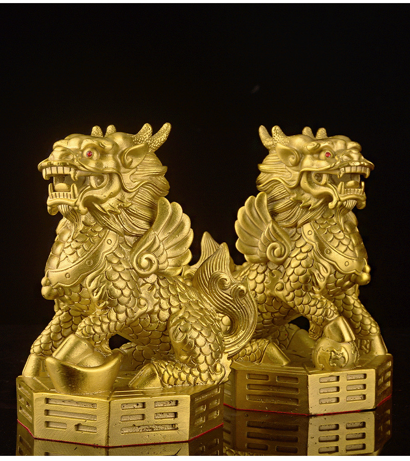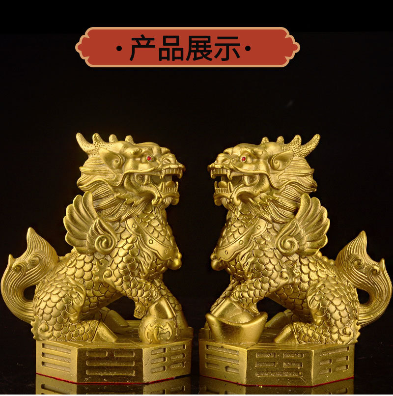 Brass unicorn ornament, the guardian god of wealth and fortune, which is used to control and receive wealth