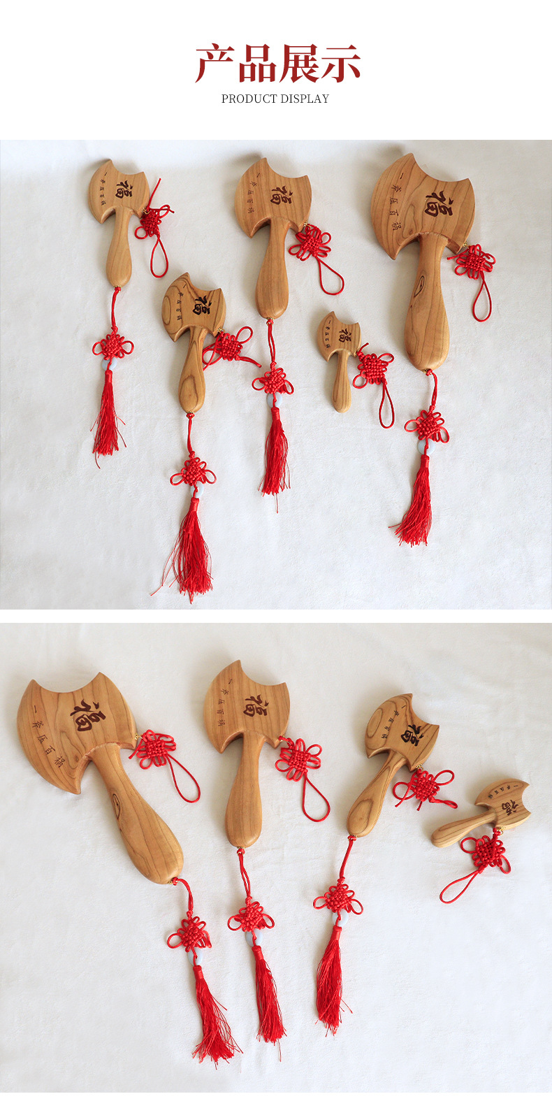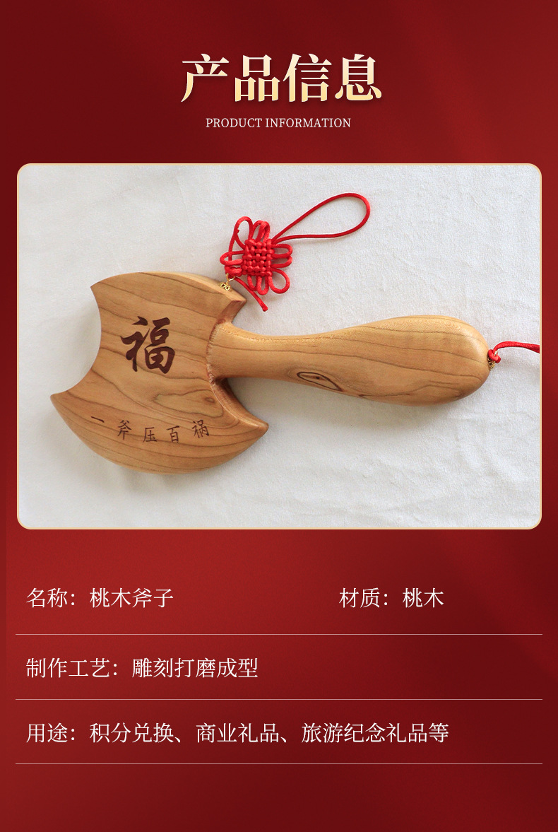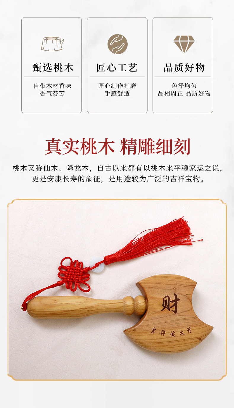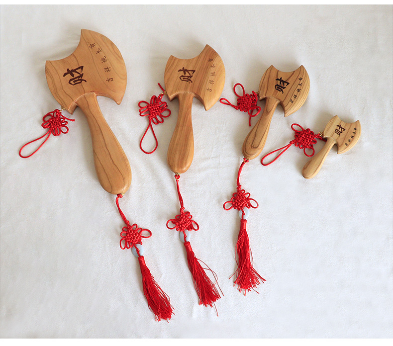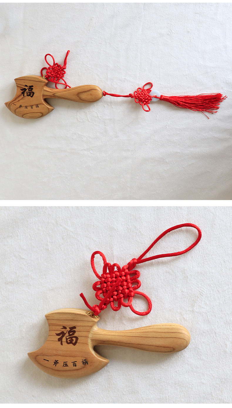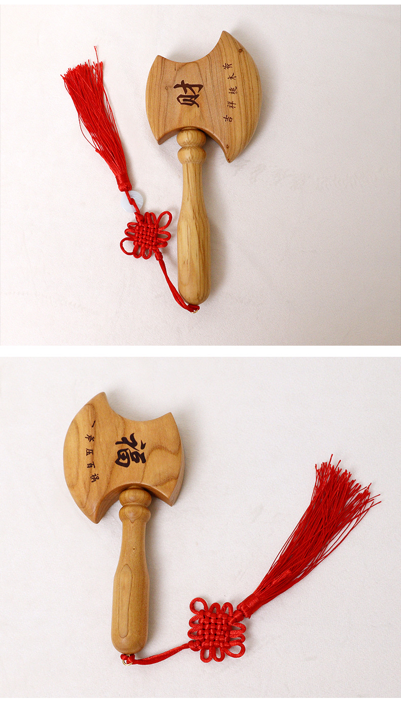 Axe, the shape of house; Peach wood is a tool to ward off evil spirits. Peach wood axe pendant, a combination of two effects, can help your house prosper and prevent all evils from invading.