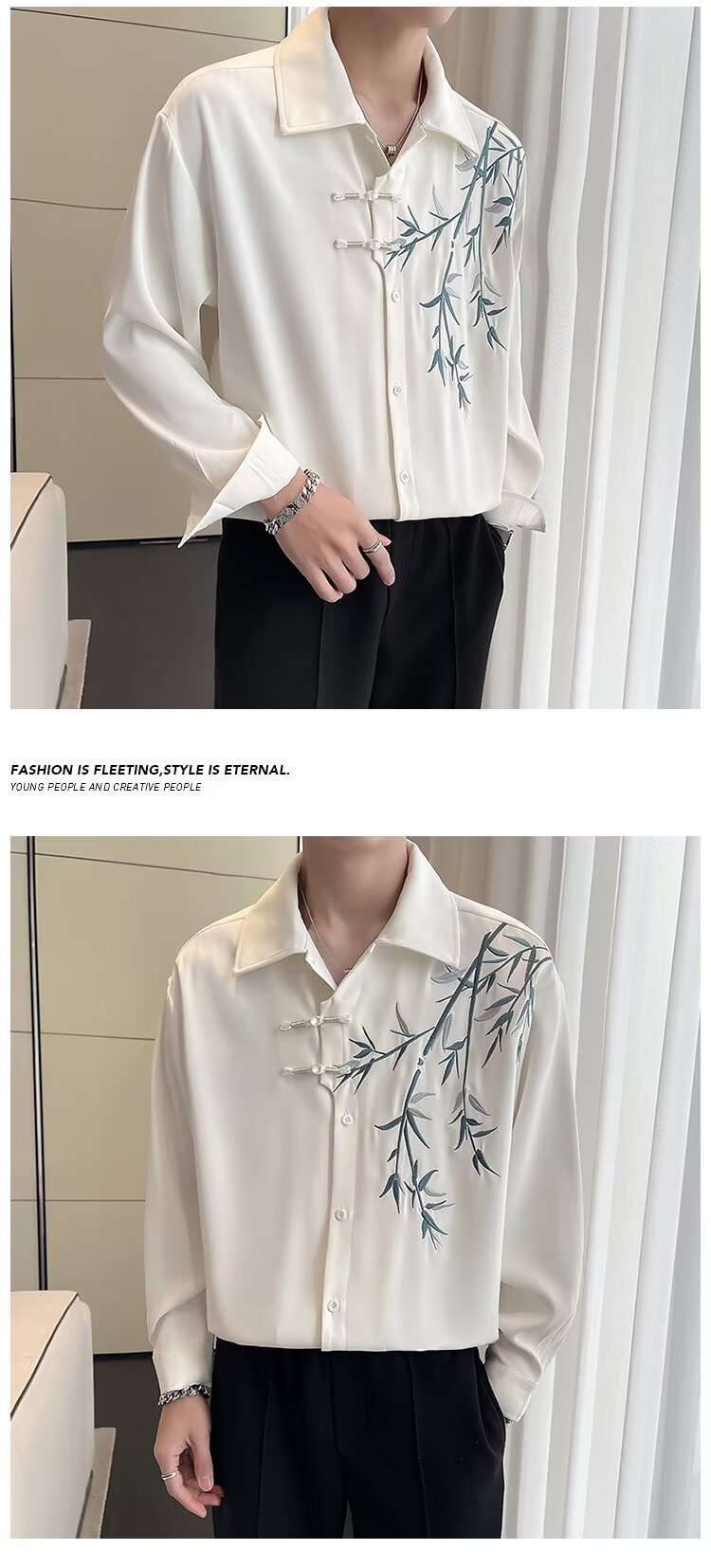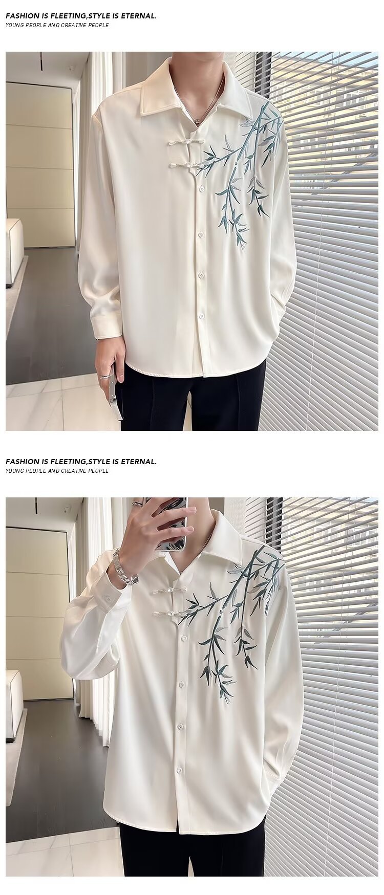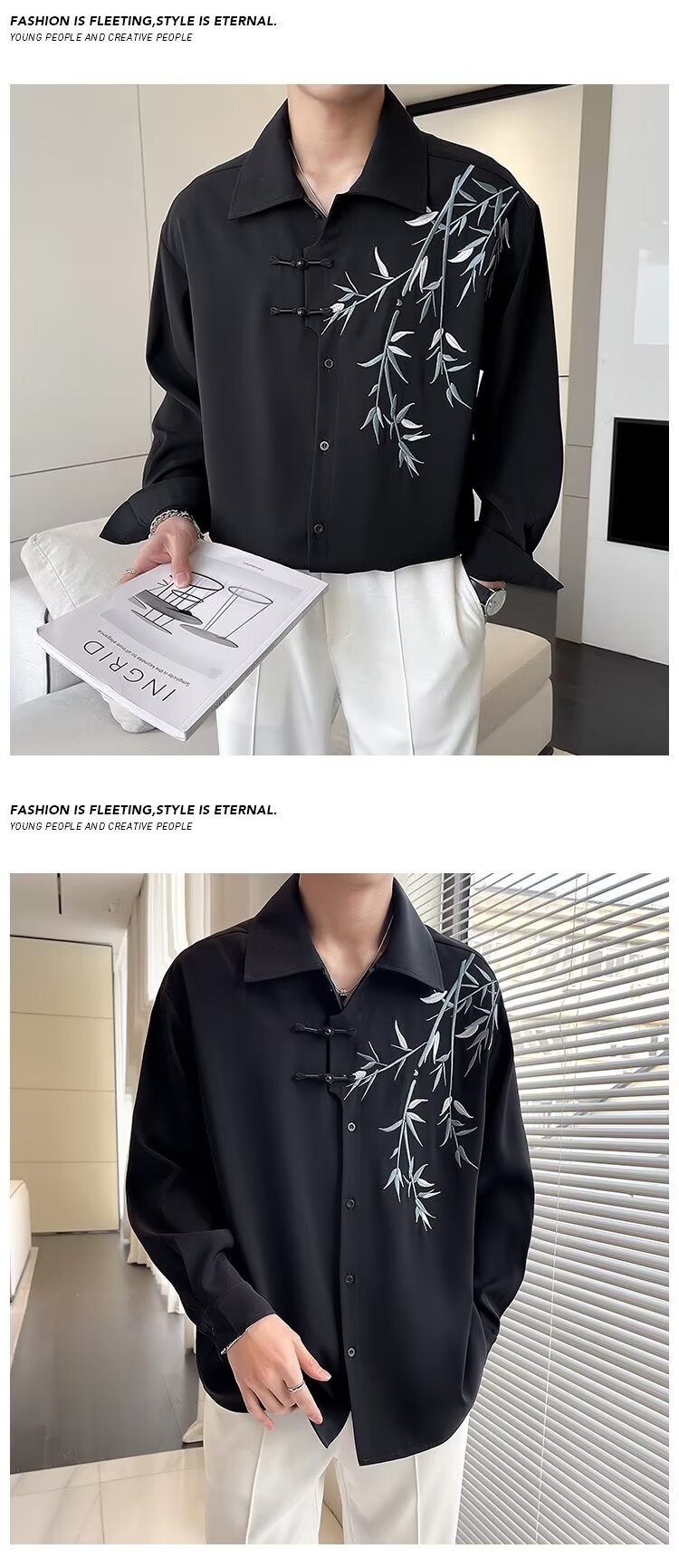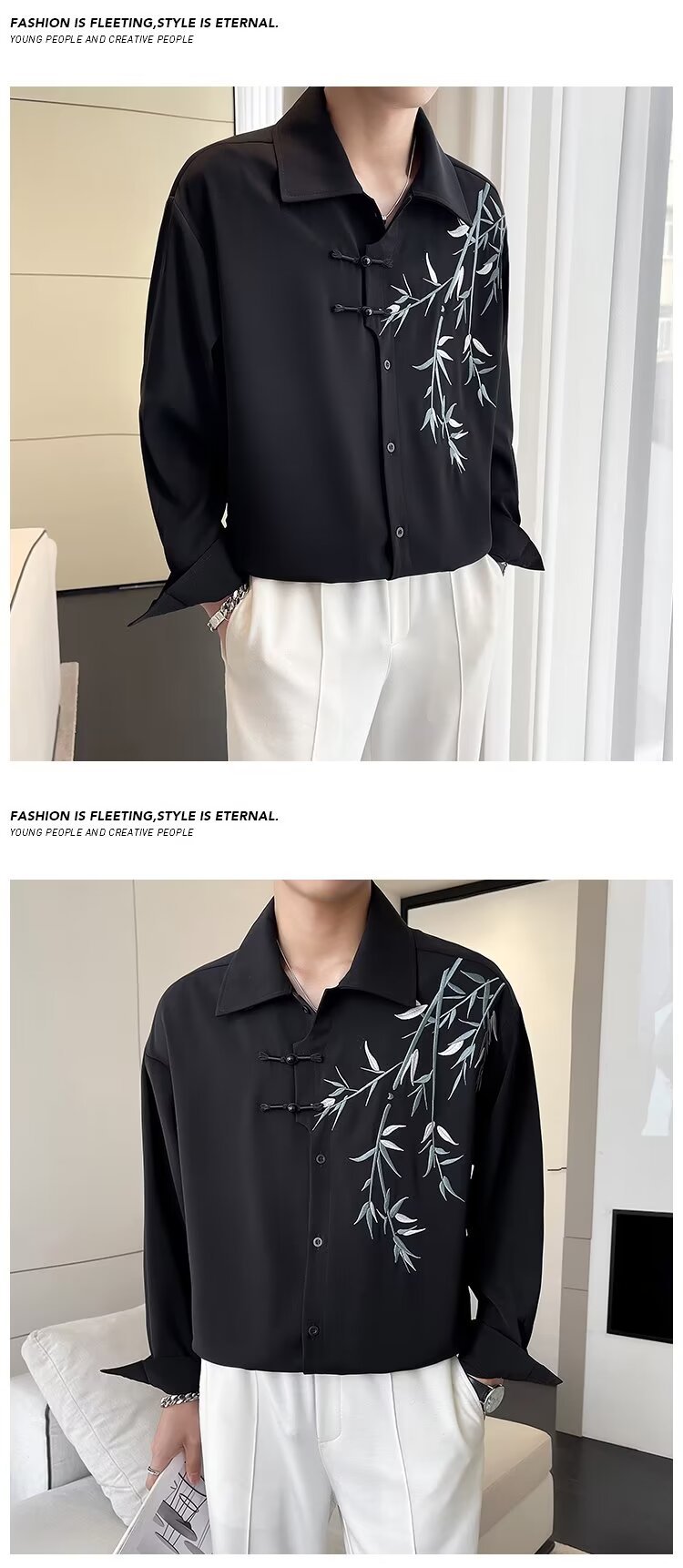 New Chinese style bamboo embroidery long-sleeve shirt Hanfu buttoned cheongsam coat online image black
